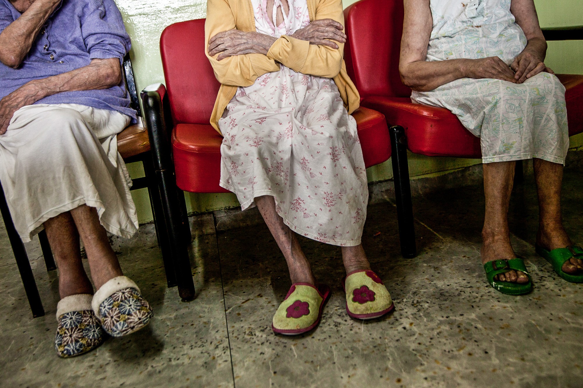 Βαδίζω προς το Γηροψυχιατρικό Τμήμα -στο Μποδοσάκειο νοσηλεύονται 46 υπερήλικες με χρόνιες και πολύπλοκες διαταραχές. Με υποδέχεται η προϊσταμένη νοσοκομειακού προσωπικού, Ελευθερία Μπερτσελή. «Δεν γίνονται πλέον εισαγωγές εδώ», μου εξηγεί καθώς περιφερόμαστε στους διαδρόμους του νοσοκομείου. Που και που ακούγονται φωνές ασθενών -οι νοσοκόμες τρέχουν να δουν τι συμβαίνει. Ρωτώ την προϊσταμένη αν καλύπτονται οι ανάγκες των ασθενών με το υπάρχον προσωπικό. «Όχι, έχουμε μεγάλο πρόβλημα.