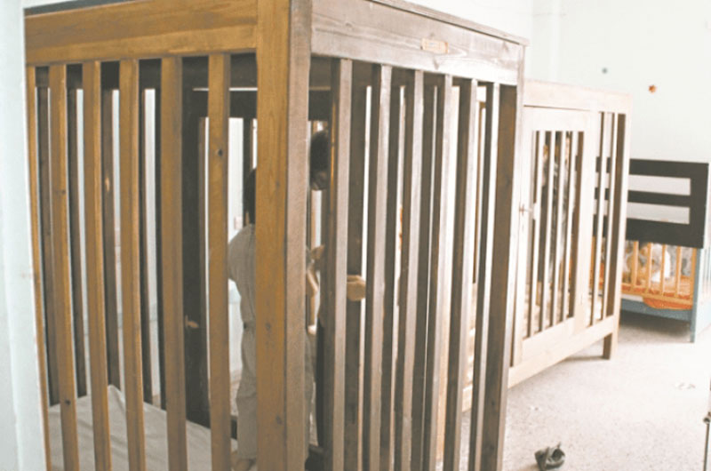 Παιδιά µε νοητικές αναπηρίες και αυτονοµία βάδισης διαβίωναν σε ξύλινα κρεβάτια/κουβούκλια (ύψους περίπου 2 µέτρων) µε πόρτα και κλειδαριά για πολλές ώρες κάθε ηµέρα (περισσότερες το Σαββατοκύριακο), µε την αιτιολογία ότι η χρήση τους επιβάλλεται προκειµένου να µην κινδυνεύουν να τραυµατιστούν κινούµενα στον χώρο, δεδοµένης της αδυναµίας εποπτείας τους. Κάποια από αυτά ζητούσαν την προσοχή, τη σωµατική επαφή και έδειχναν επιθυµία να βγουν από τα κρεβάτια τους, ενώ άλλα παρέµεναν αδιάφορα ή κινούνταν στερεοτυπικά. Δεν υπήρχαν παιχνίδια δίπλα τους ή προσωπικά αντικείµενα, καθώς θεωρούνταν επικίνδυνα λόγω πιθανότητας αυτοτραυµατισµού, πάντα µε την αιτιολογία της αδυναµίας συνεχούς εποπτείας τους, λόγω της έλλειψης προσωπικού.