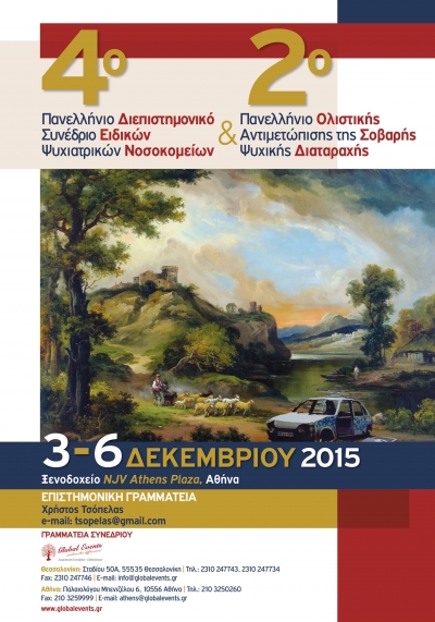 Η Εταιρεία μελέτης των σοβαρών και επιμενουσών ψυχικών διαταραχών, «ΑΝΑΚΤΗΣΗ» διοργανώνει το «4ο Πανελλήνιο Διεπιστημονικό Συνέδριο Ειδικών Ψυχιατρικών νοσοκομείων» και το «2ο Συνέδριο Ολιστικής Αντιμετώπισης της Σοβαρής Ψυχικής Διαταραχής», 3-6 Δεκεμβρίου 2015 στο AthensPlaza, στην Πλατεία Συντάγματος.