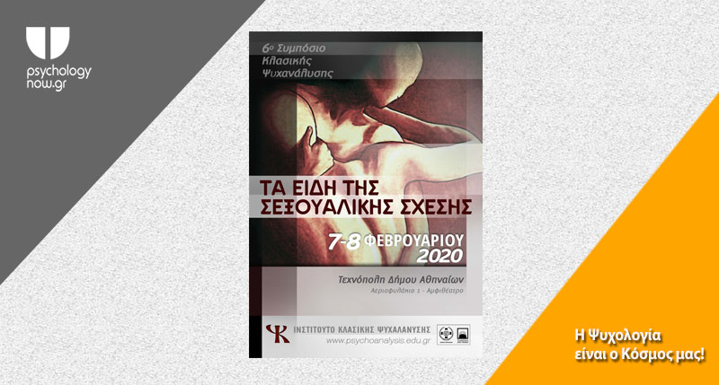 Το Ινστιτούτο Κλασικής Ψυχανάλυσης διοργανώνει και σας προσκαλεί στο 6ο Συμπόσιο Κλασικής Ψυχανάλυσης με τίτλο «Τα Είδη της Σεξουαλικής Σχέσης» που θα πραγματοποιηθεί στις 7 και 8 Φεβρουαρίου 2020 στην Τεχνόπολη Δήμου Αθηναίων.
